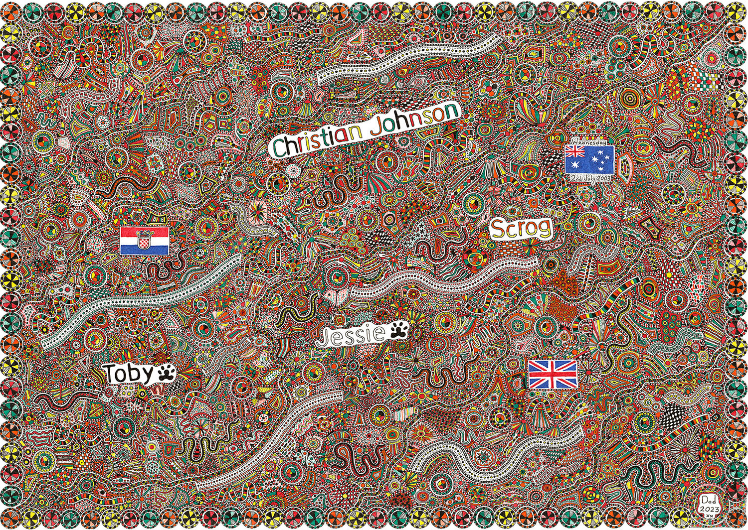 Every drawing takes months to create, they evolve and I weave through different shapes and journeys using colour to bring the drawings to life. I have moments when I can say to myself, the drawing has just “popped”, it suddenly came together and I achieved something I can explore and immerse myself in to. Only my imagination holds me back, but my imagination has no bounds.